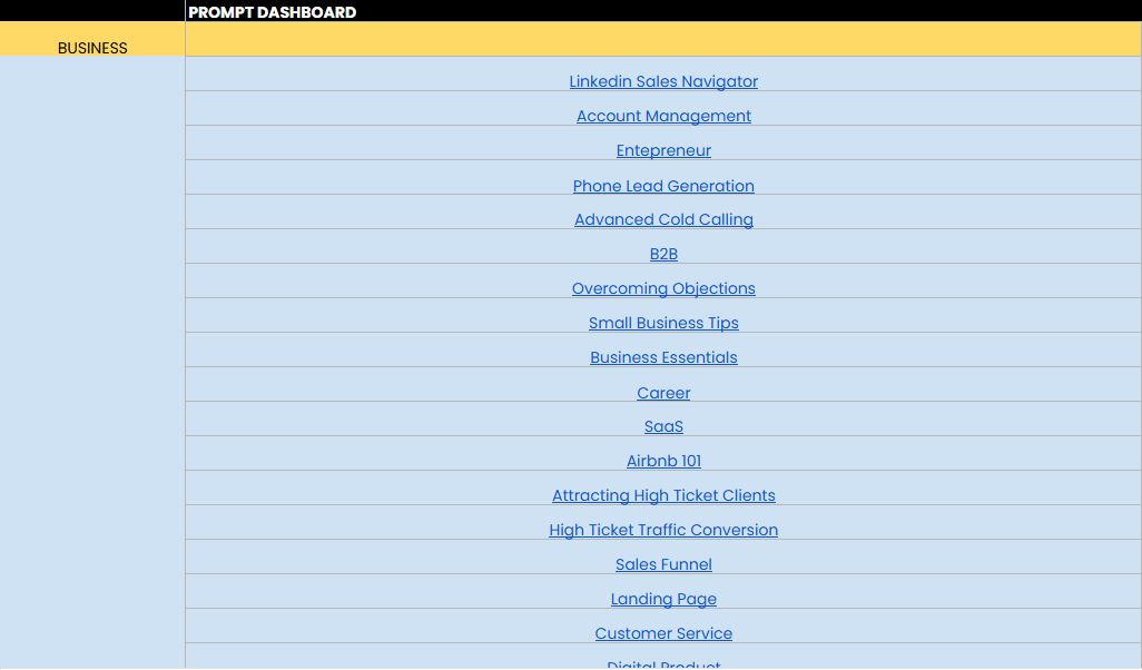 With this prompts pack, you can stop overthinking what to ask ChatGPT and start getting practical results immediately. From creating persuasive sales copy to generating marketing ideas or even managing your day-to-day business tasks, these prompts give you a shortcut to productivity.